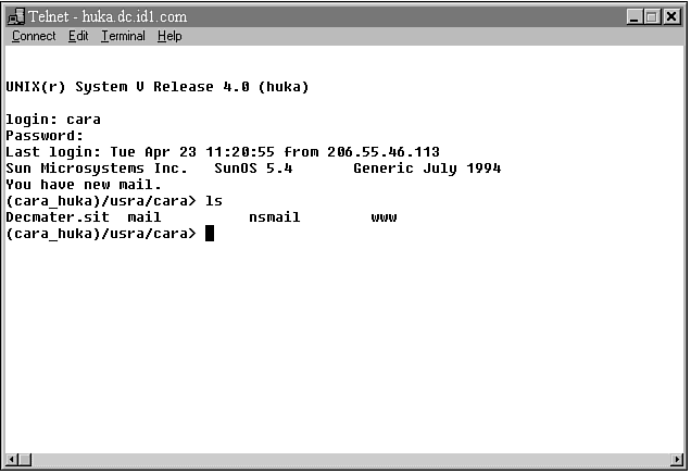 This Telnet comes with Windows 95 and Windows NT. It's free but has few features (see Figure 13.17). (See Chapter 29, "Telnet: Direct Access," for reviews of popular terminal applications.)