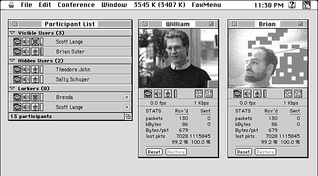 System administrators interested in supporting video-conferencing over the Internet without the compromise of excessive bandwidth have several tools at their disposal. As mentioned previously, reflectors also can serve as effective managers of bandwidth. The servers from White Pine are able to adjust transmission rates of individual users on-the-fly during times of heavy network traffic. Also, reflectors can manage data for supporting applications such as whiteboards or chat windows. System administrators can set minimum transmission rates that will adjust to different speeds of connections to the network. Thus, bandwidth can be optimized for ISDN, ATM, or modem lines. The bandwidth management capabilities of reflectors are essential to Internet Service Providers that have to balance the requirements of their non-video-conferencing network with the bandwidth consumed by their video-conferencing users during peak times of the day.
