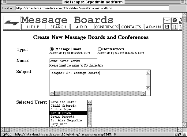 Figure 37.7: IntraActive's In Tandem allows users to create a message board.