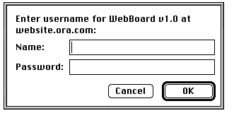 Figure 37.8: You can Configure O'Reilly's WebBoard to require a username and password.