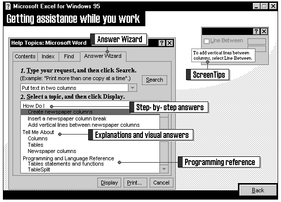 These examples, like many of the scenarios discussed here, are founded in hypertext. Hypertext formats have emerged as the best way to organize help information. If you know anything about HTML and how links work, you'll know that it is easy to construct flexible, uncluttered help pages with hypertext. The help functions on most word-processing, spreadsheet, desktop publishing, and officeware programs-whether they are for Windows, Macintosh, or other operating systems like Solaris and SGI-use SGML, the forebear of HTML. Because of this relationship, you can model the help functions of your intranet on the help functions of programs that are especially appealing to you.