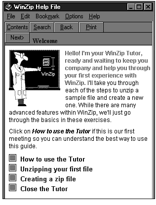 Figure 45.2: NicoMak Computing's WinZip offers a help tutor.