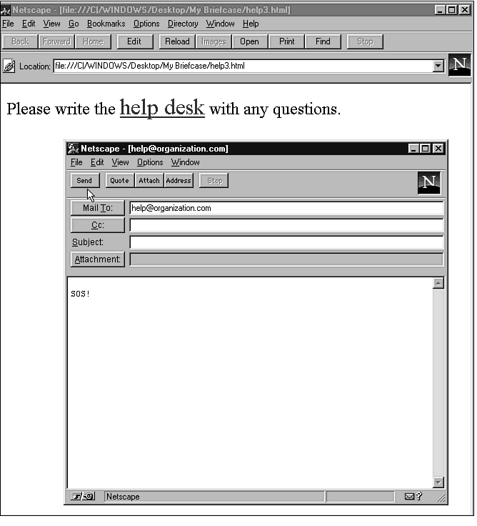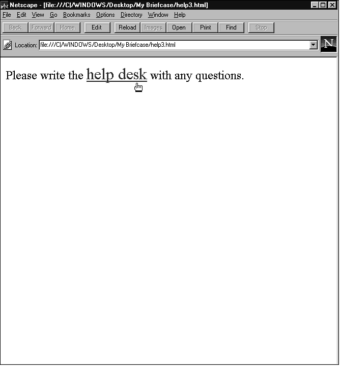 help@organization.com is the hypothetical e-mail address for a help desk. Figure 45.6 shows how this passage appears on a Web page.