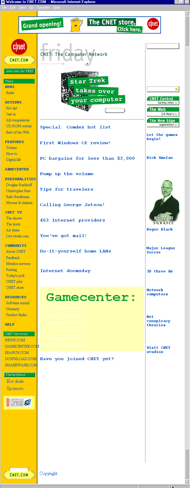There is no glimmer, glamour, or commercialism. Instead, C|NET combines intelligent and functional design with remarkable content. The content is the meat of the matter, in fact, and it will come as no surprise that content is driven by a staff of very