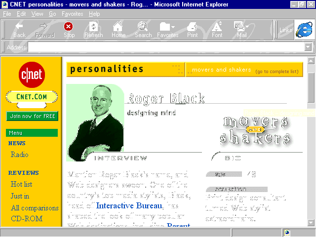 This show model does not exist elsewhere, and speaks to a very important aspect of what Web sites currently need to remember: New media is interactive media, and the Web is evolving toward a fully integrated multimedia model. The unifying theme between