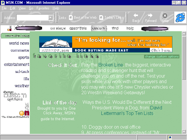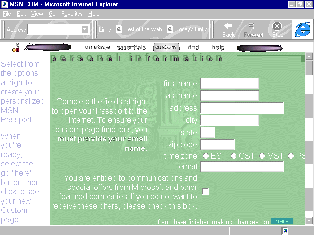 A profound example of this on the free-range, full access site is found with the customization process that msn. offers. In essence, msn. has created a potent and powerful marketing tool by offering their Web address as a personalized starting point for