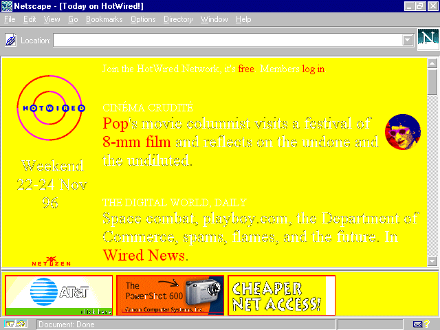 might want to consider for their own creations. A trick to getting beyond the bandwidth, or "pipe" problems, is offered up by HotWired, one of the Web's first and most popular technology-based 'zines.