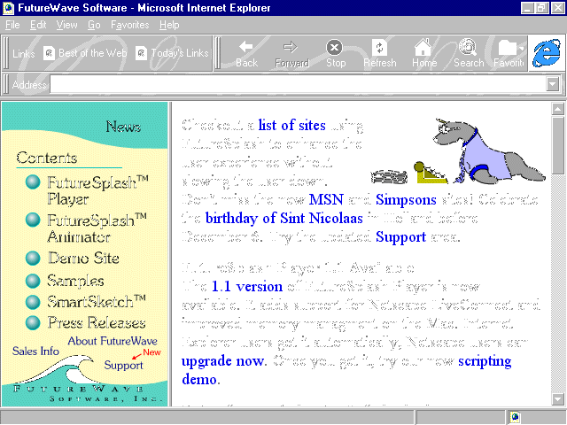 FutureSplash's home site, FutureWave, provides a contemplation of this interesting and effective technology.