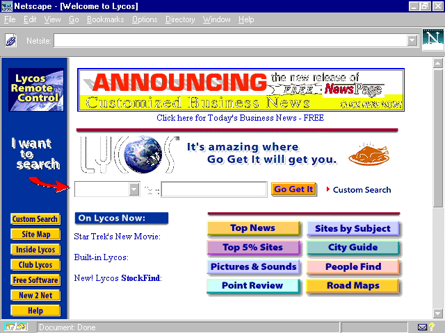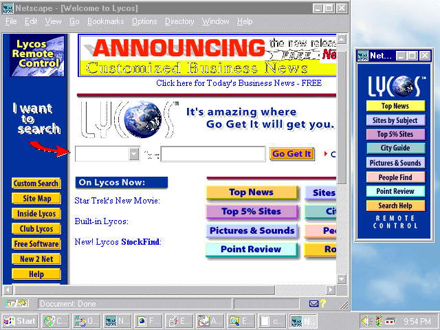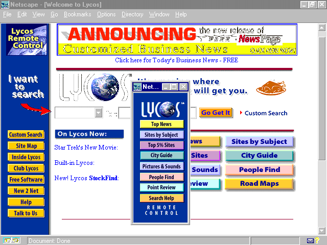 Lycos offers another navigation option as well: the popular Java applet referred to by Lycos as a "remote control." I've seen similar applets also called "Launch Pads." The concept is, basically, to create a remote control style