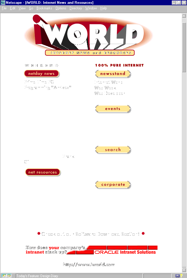The design of the IWorld site is neither overwhelming, nor should it be. It is subtle, with good use of color and layout, and the information is well-organized. This is another example from the less-is-more school of Web design. The message is in the