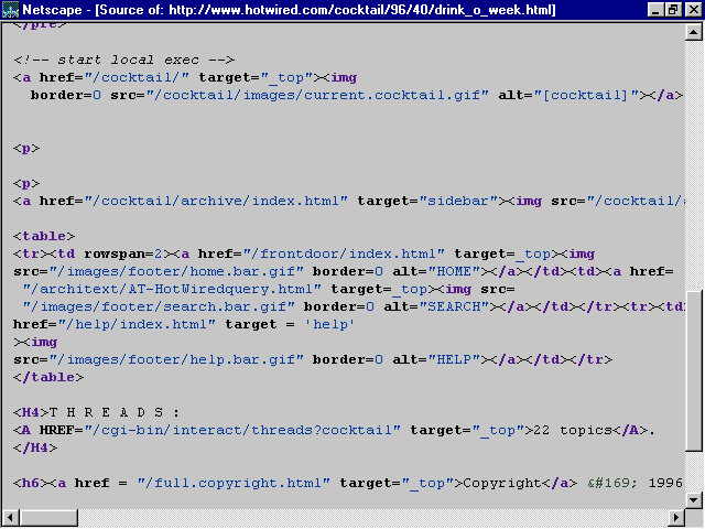 Here's an example of how Hotwired coded the site: