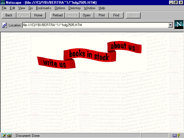 In order to obtain the graphic continuity of the site, the use of transparent GIFs came into play. Transparency is akin to painting an image in clear adhesive tape. When placed on a stucco wall, the image appears to be painted on the stucco rather than