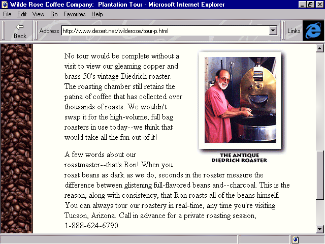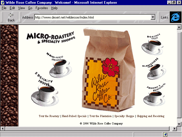 For the decaffeinated among you, 7 UP's site is a refreshing look at community sponsorships, showing Web designers how to offer philanthropy along with a product. For those who like their caffeine unadulterated, Wilde Rose Coffee Company brews up a fine