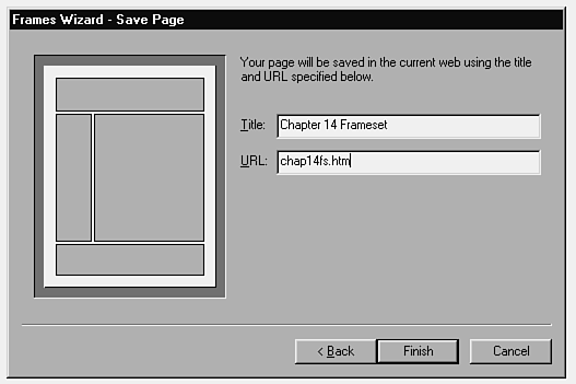In this chapter, you learned how to give your pages multiple personalities by using frame sets. With the Frames Wizard, you designed a frame set and learned how to include page content in specified frames. You even learned how to use the same content for people who do not use frame-compatible browsers.