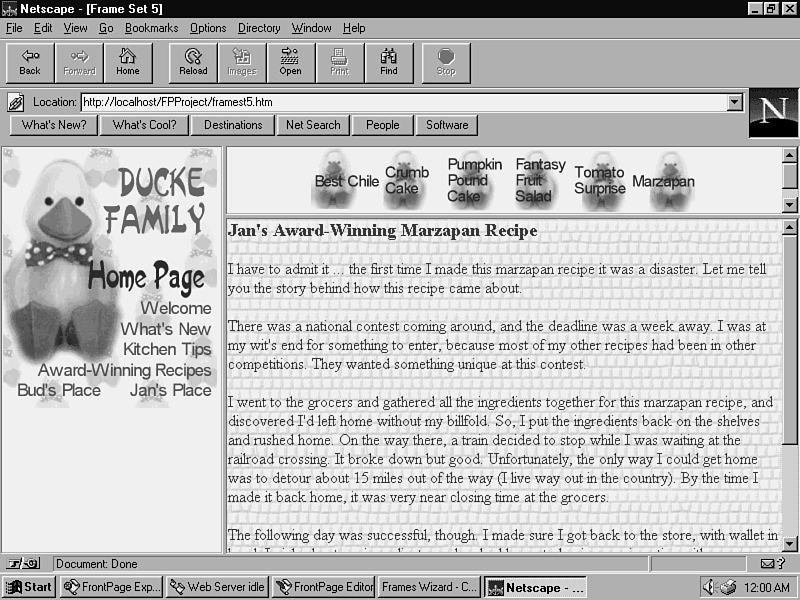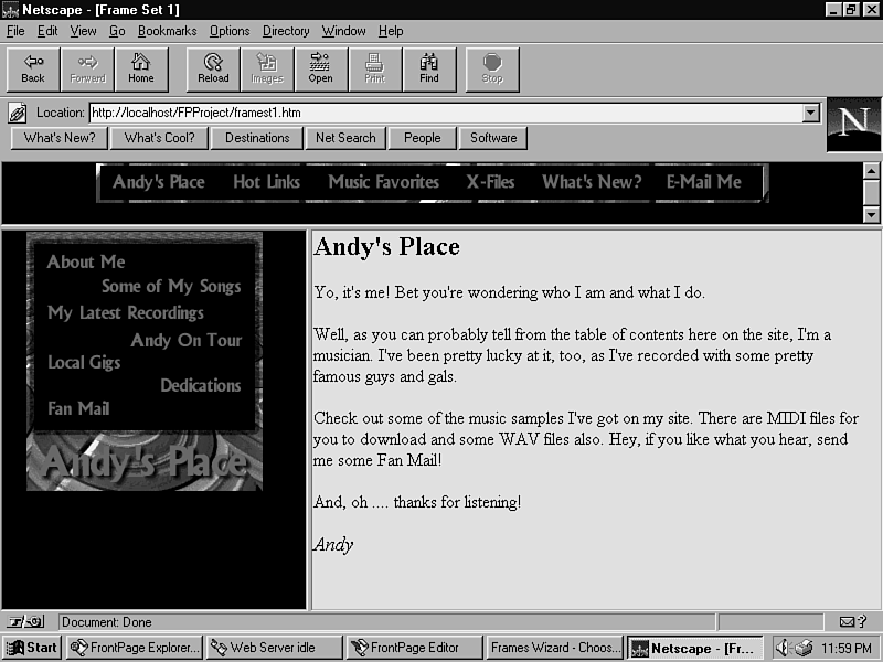 The browser loads the frame set. It should look like the one in Figure 14.12.