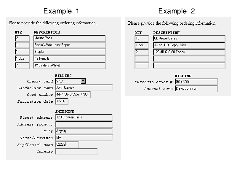 Figure 18.7:Use ordering information in an online order form.