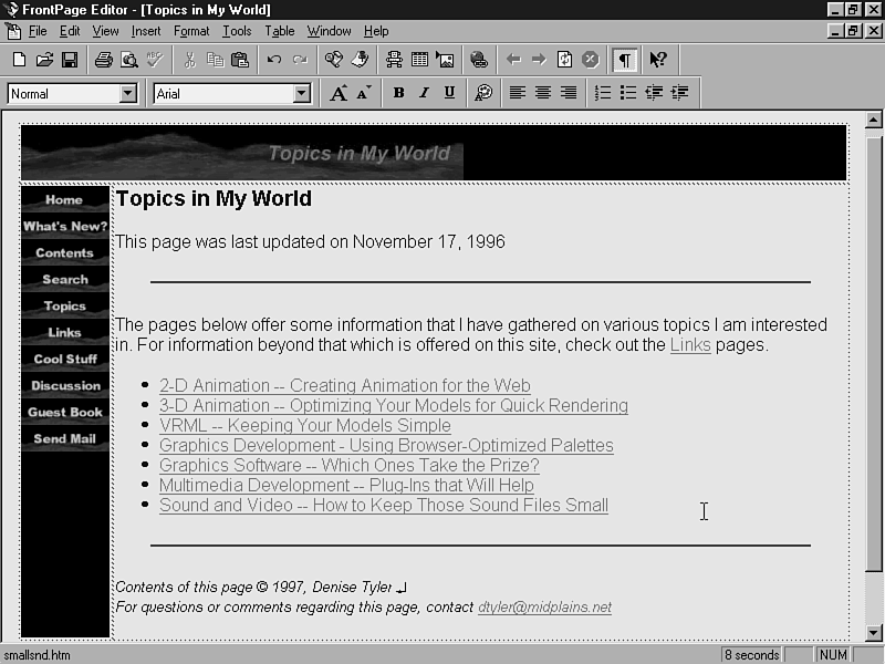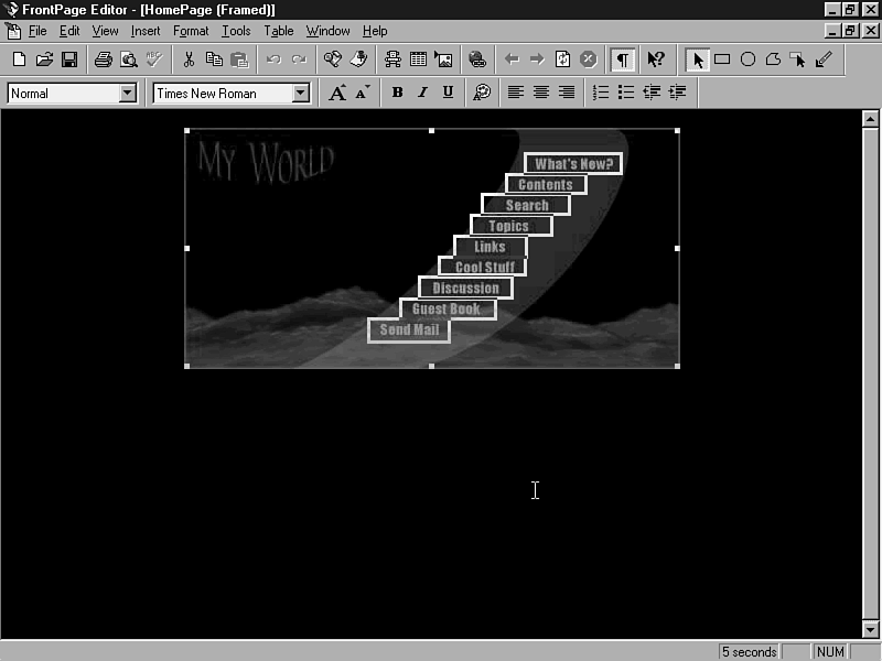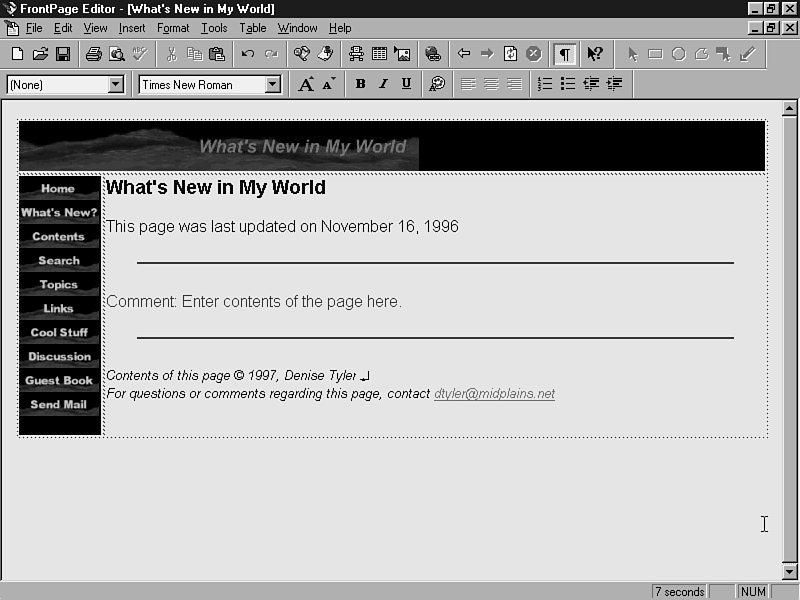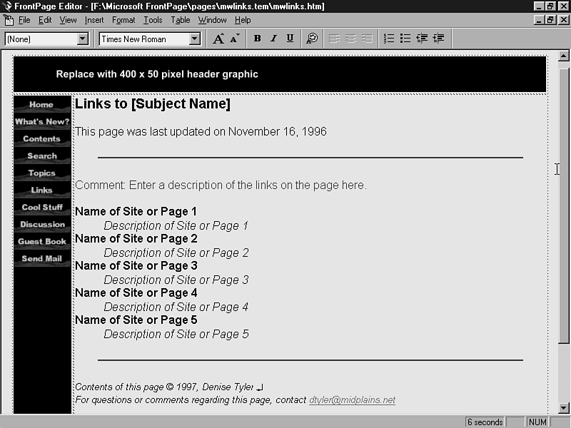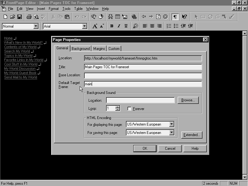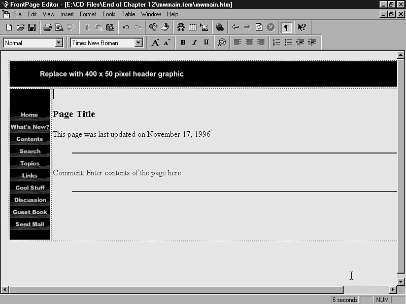 FrontPage\pages\mwmain.tem directory. Select mwmain.htm