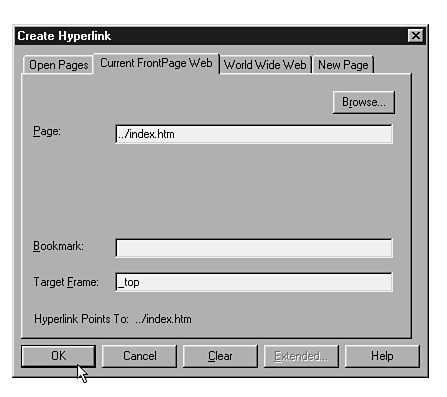 dialog box opens. Select the Current FrontPage Web tab. Double-click