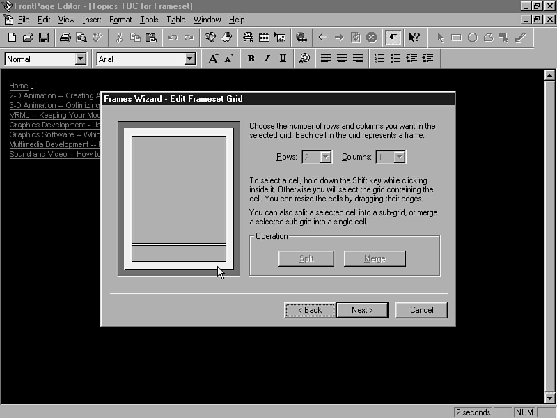 TOC for Frameset, shown in Figure 18.25. This page appears at