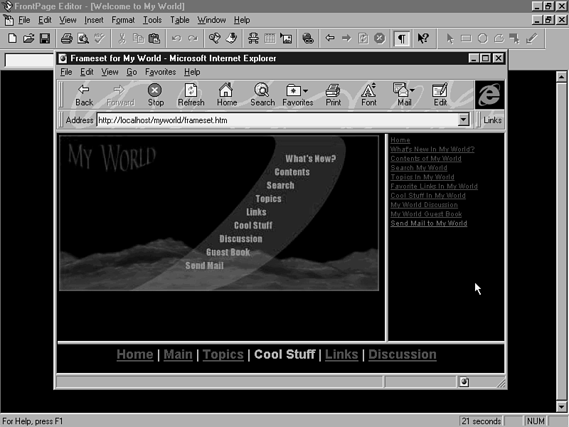 Figure 18.26 : Preview your frameset in different browsers to test the links.