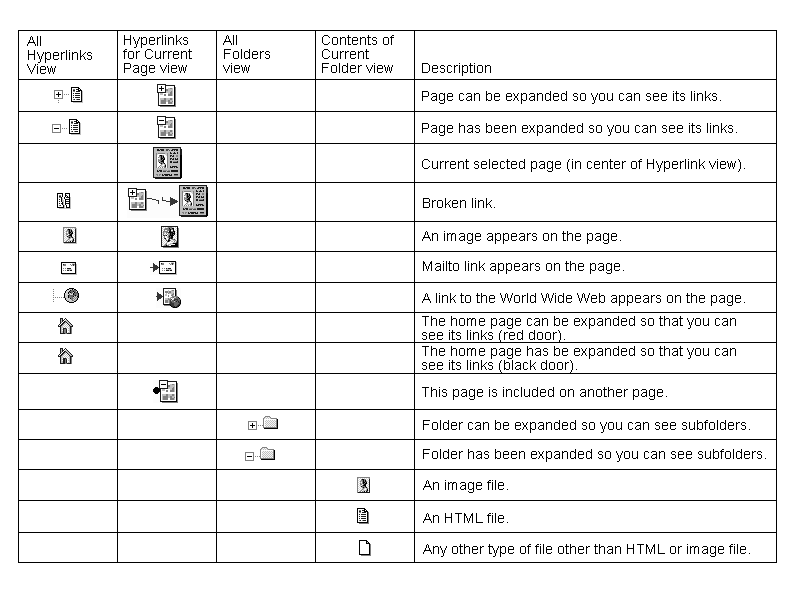 The FrontPage Explorer has several icons that indicate the items and links that appear on pages. Table B.3 explains the icons.