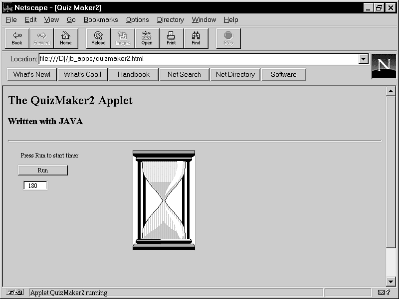 The final version of the QuizMaker class is shown in Listing 16.4. As you can see, the display resulting from this code is exactly the same as the display resulting from extending the class in the previous section. Could you have made all the changes as extensions and not had as much code in the class? You could have, but it would have been unreasonably hard to follow with methods being used in superclasses and then defined away in subclasses. This difficulty justifies the decision to rewrite the applet rather than extending it.