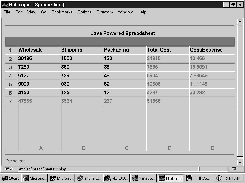 Figure 20.3 : A document using the SpreadSheet applet's defaultsettings.