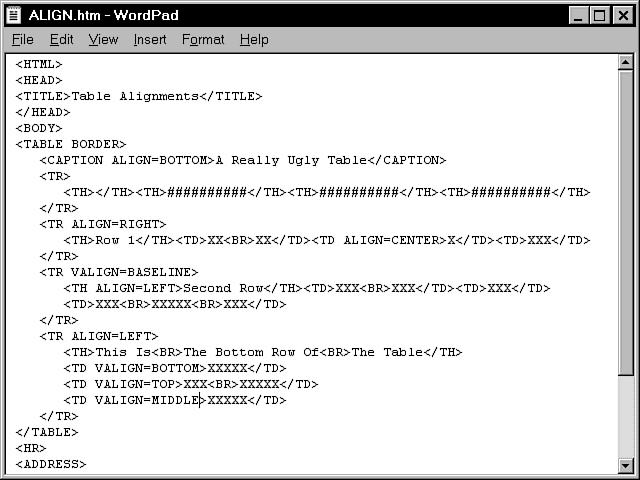 Although this table is pretty ugly, it illustrates the capabilities of the different ALIGN and VALIGN attributes, as follows: