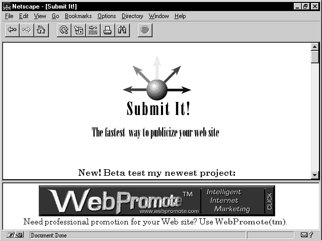 The advantage of these "what's new" services is that many people visit them on a regular basis, so getting listed can bring visitors to your site who might not have found it otherwise. The disadvantages are that your stay on the server is for a limited time, the traffic tends to be casual browsers rather than people with a strong interest, and some of the servers have an annoying habit of listing sites in alphabetical order. This last disadvantage may seem unimportant, but the Aardvarks Anonymous site is much more likely to get noticed than is the Zoological Society of Aardvark Fanciers.