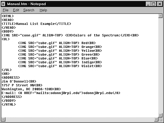 Figure 9.16 shows how this document displays in Netscape Navigator. Other browsers may format this text differently.
