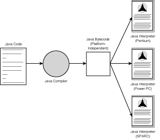 Why go through all the trouble of adding this extra layer of the bytecode interpreter? Having your Java programs in bytecode form means that instead of being specific to any one system, your programs can be run on any platform and any operating or window system as long as the Java interpreter is available. This capability of a single binary file to be executable across platforms is crucial to what makes applets work because the World Wide Web itself is also platform independent. Just as HTML files can be read on any platform, so can applets be executed on any platform that has a Java-enabled browser.