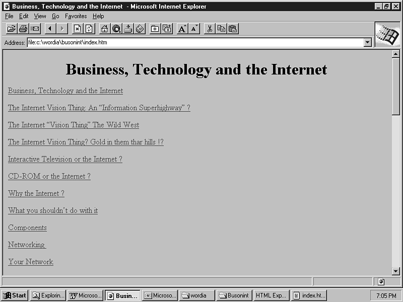 The Internet Assistant is now complete. Open your browser to take a look at the new HTML files.