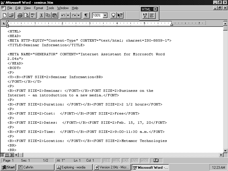 creating an HTML document with Internet Assistant. If you are