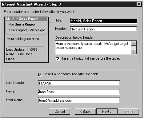 Using the Internet Assistant for Access to move converted Access objects, such as tables, queries, form datasheets, or reports, to HTML is extremely easy, thanks to the Wizard that guides you through the process. In a matter of minutes you will be able to move any Access data to a new HTML file without ever typing in a line of HTML.