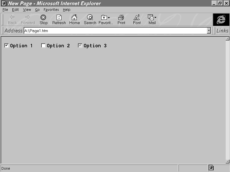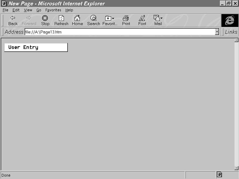 A lot of the Microsoft Forms controls discussed in this chapter are as Microsoft implements the HTML forms. When Internet Explorer encounters an <INPUT TYPE=CHECKBOX> tag in an HTML document, for example, it calls its CheckBox control to implement it. Therefore, it is not necessary for you to implement HTML form elements by directly accessing the controls, since you can achieve the same thing using standard HTML 3.2. However, there are instances where you want to use the controls directly. Other reasons are to put form elements into an HTML layout or to use the control to achieve a special effect in these controls that is not possible when using it through standard HTML. |