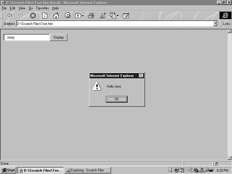 Working through a quick example might make things clearer for you. This example in particular is a simple Web page that prompts the user for his name and displays a greeting to him when he clicks a button. Use these steps to create this example: