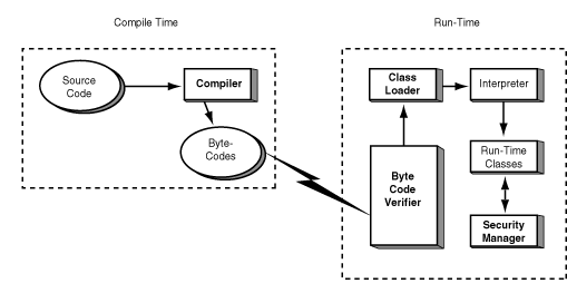 However, Java offers more than just the byte-code system to get high performance. Since the byte-code system is at a low level, it can be easily converted at runtime to the native platform. Just-in-time Java compilers will be out in the near future to allow this. Another performance enhancement is a by-product of another Java feature. When a class is brought into memory at runtime, it runs through a verification process as part of the Java security mechanism (discussed in the section "Java as a Secure Environment"). This process not only guarantees that the code you are loading is secure, but the end result is code that requires less runtime checks. These checks, which otherwise would hurt performance, now don't need to be executed. For example, the runtime system does not have to check for stack overflows on verified code.