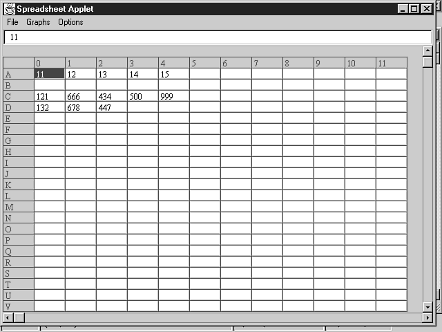 Figure 5.1 : The spreadsheet applet with scrollbars.