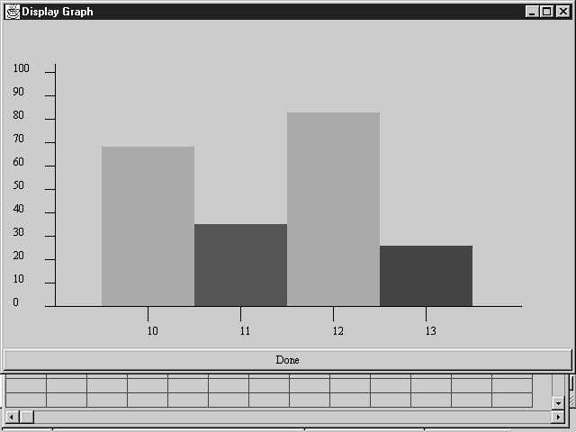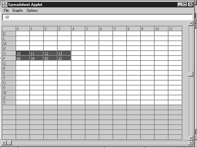 With all these tools at hand, a few last touches can now be added to the applet. Scrollbars are added to the spreadsheet, as is support for marking cells. The latter will be used to generate the final feature of the spreadsheet applet, the runtime generation of graphs.