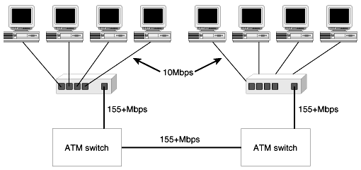 To close this discussion of hubs, we'll discuss a relative newcomer to the hub market: the ATM switch. It's not a hub, but it can provide a high-speed backbone for hubs.