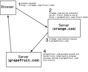 The last option for dealing with files that have moved is to use server redirection. This is a special rule you can set up in your server configuration files that tells the server to redirect the browser to a different location if it gets a request for the old file (see Figure 27.5). Using server redirection provides a seamless way of moving files from one system to another without breaking all the references that are out there on the Web.