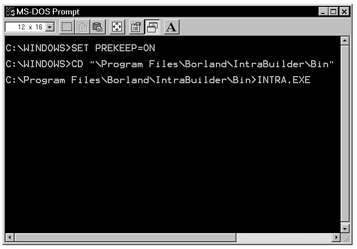 Figure B.2 : Opening IntraBuilder from a DOS window.