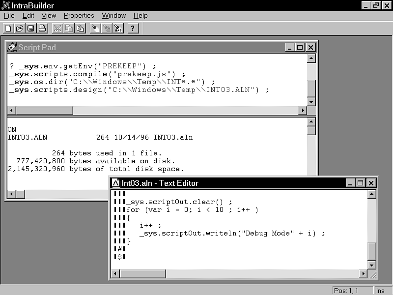 IntraBuilder recognizes one DOS environment variable, PREKEEP. If PREKEEP is equal to ON, IntraBuilder does not delete any temporary files created during compilation.