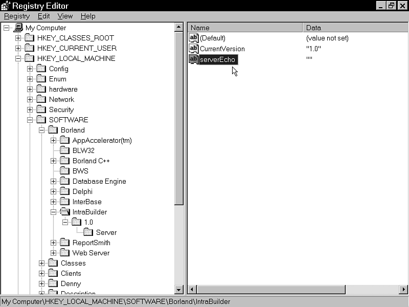 HKEY_LOCAL_MACHINE\SOFTWARE\Borland\IntraBuilder\1.0\Server