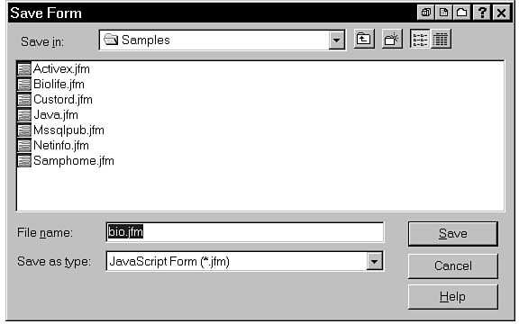 When you elect to run a newly created form, IntraBuilder requires that you save the form to disk first. Key in a name for your new form and click Save, as Figure 3.12 shows.