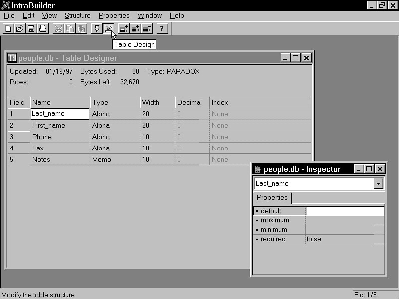 Because we're currently dealing with Paradox tables, I'll begin discussing IntraBuilder's database administration as it applies to Paradox tables. Later, we'll cover database administration with dBASE tables, as well.