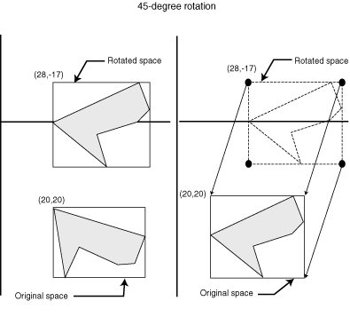 After the rotation, the object needs to be moved back to the original coordinate space. Figure 14.1 provides a graphical view of the process.