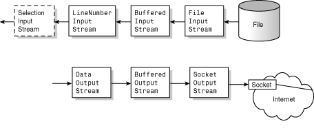 The really useful thing about all these various stream classes is that each of them inherits from one of the base classes InputStream and OutputStream, so they can be treated as instances of those types when desired. If you need to call a method that takes one of those two base classes as a parameter, and you don't want to give that method the raw data stream, you can simply tack a filter stream (or a whole chain of them) onto the original stream and pass the last filter stream into the method.