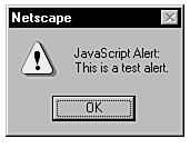 Notice that Netscape prefaces each of the dialogs with a message, such as "JavaScript Alert:" or "JavaScript Confirm:". Unfortunately, there is no way to avoid the display of these messages in the present version. |