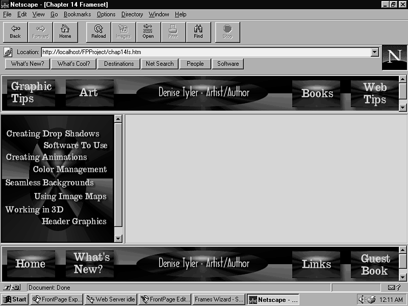 The browser loads the frame set. It should look like the one in Figure 14.12.